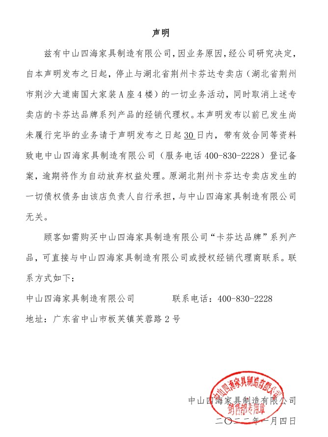關於公(gōng)司屬下品牌卡芬達家居及各子係列產(chǎn)品調價的通知