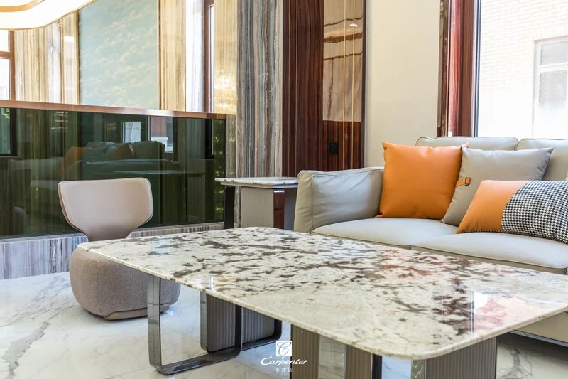 與大理石(shí)肌理、金屬扶手的融入(rù)
